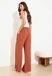 REGULAR FIT - WIDE LEG TROUSERS . - Pantalon classique - rust brown