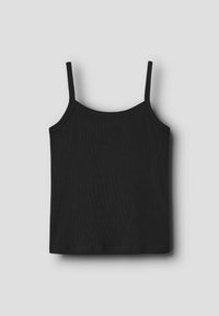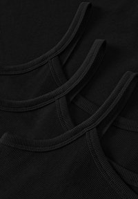 Trois camisoles noires sans manches avec de fines bretelles, superposées en décalé sur un fond blanc.