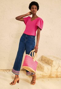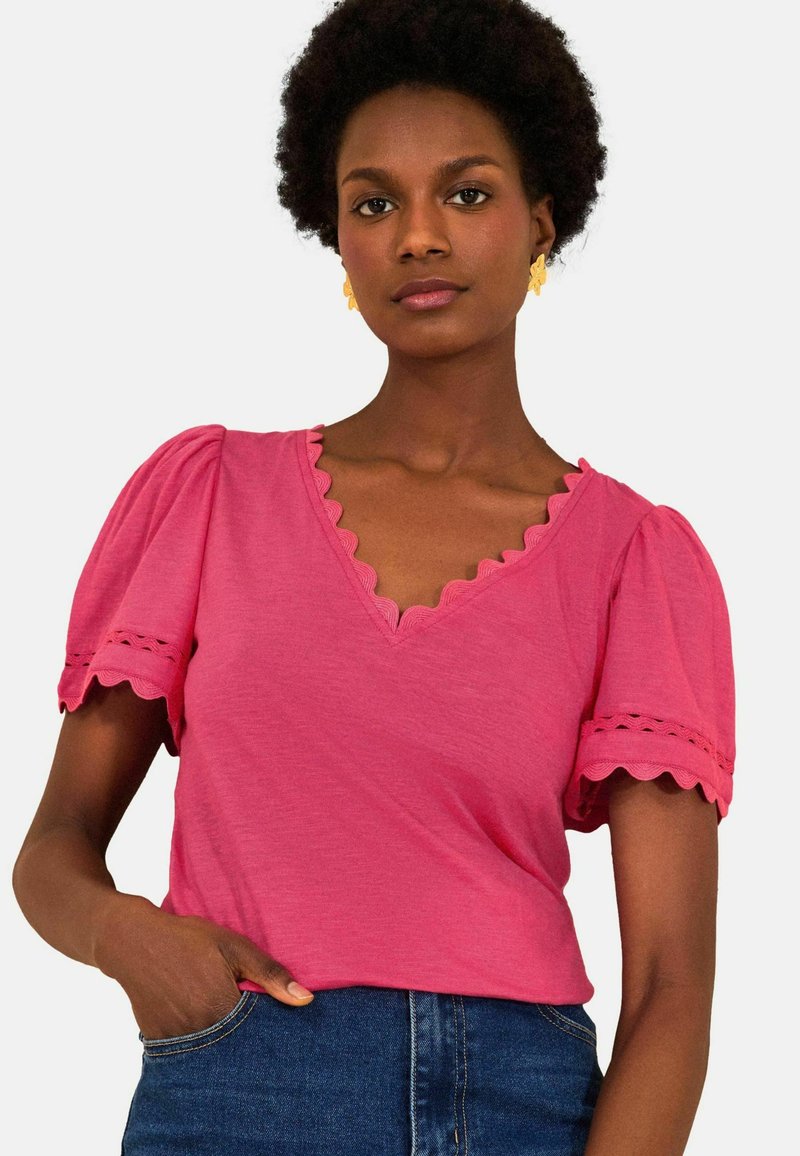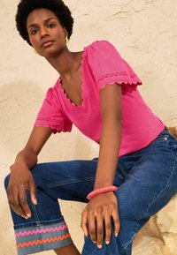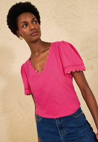 REGULAR FIT - SCALLOP V-NECK T-SHIRT . - T-shirt imprimé - bright pink