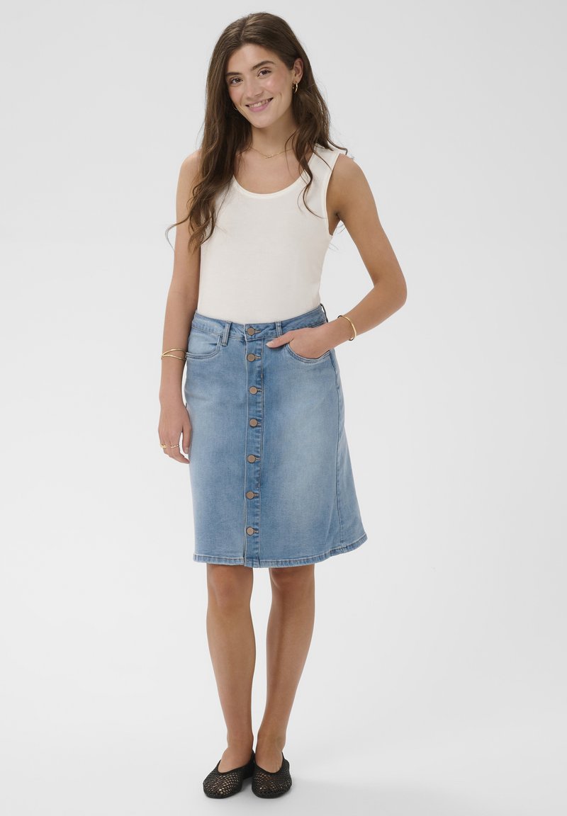 LCRITA BUTTON DENIM SKIRT - Jupe en jean - soft blue denim