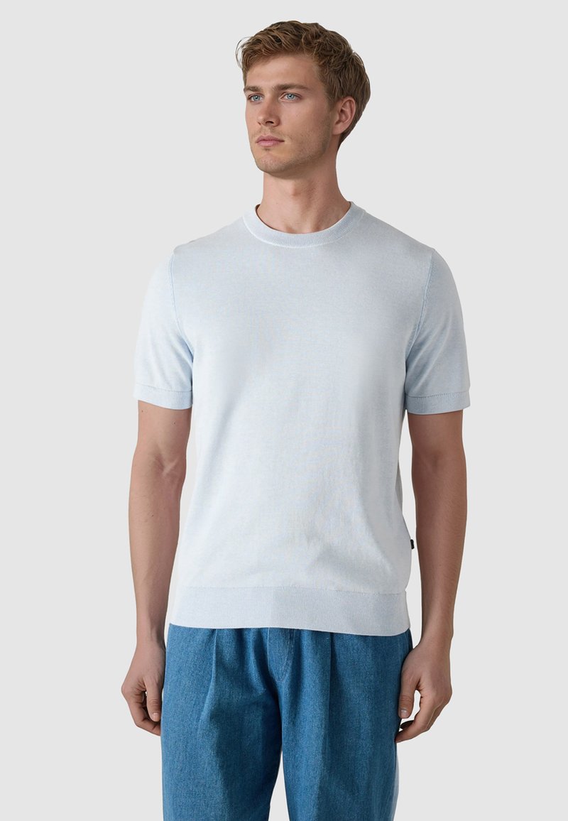 UNIFARBEN OBERTEIL MIT QUASTEN-BÄNDER KURZE ÄRMEL - T-shirt basique - blue sky