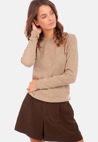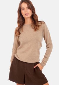 Doux, léger et chaud. Le cachemire est un poil de chèvre très fin qui est trois fois plus isolant que la laine de mouton et qui devient de plus en plus doux avec le temps.- Composition :