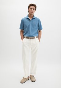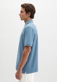 Marc O'Polo SHORT SLEEVE BUTTON PLACKET SLITS AT HEM EMBROIDERY ON CHEST - Polo - provincial blue