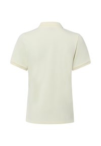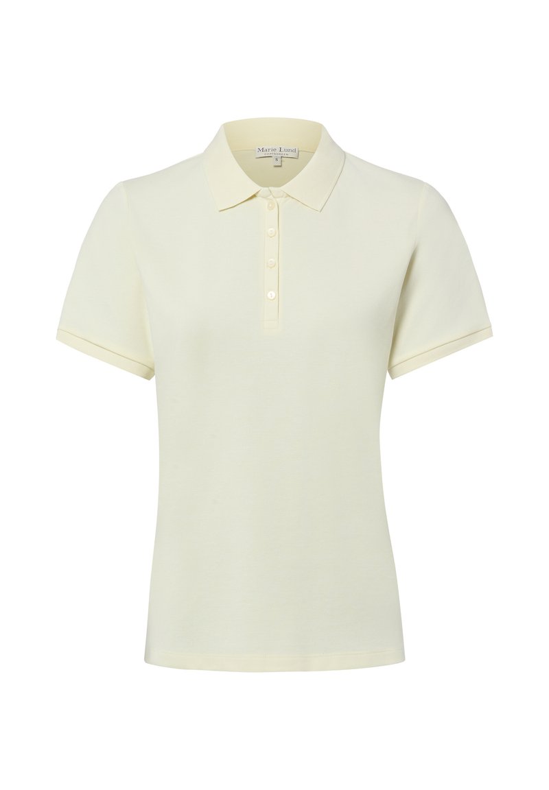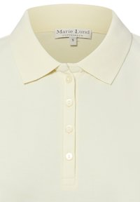 Polo crème à manches courtes avec col et quatre boutons sur la patte, taille petite.