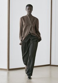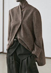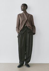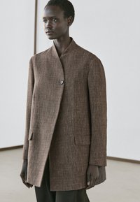 FLECKED WITH HIGH COLLAR - Manteau court - dark brown