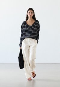 LINEN WIDE-LEG ELASTICATED - Pantalon classique - white
