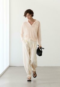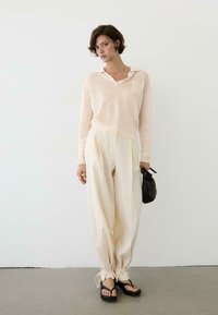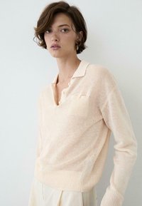 Pull en lin. Poche passepoilée boutonnée à la hauteur de la poitrine. Finitions côtelées. Col polo boutonné.