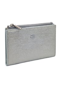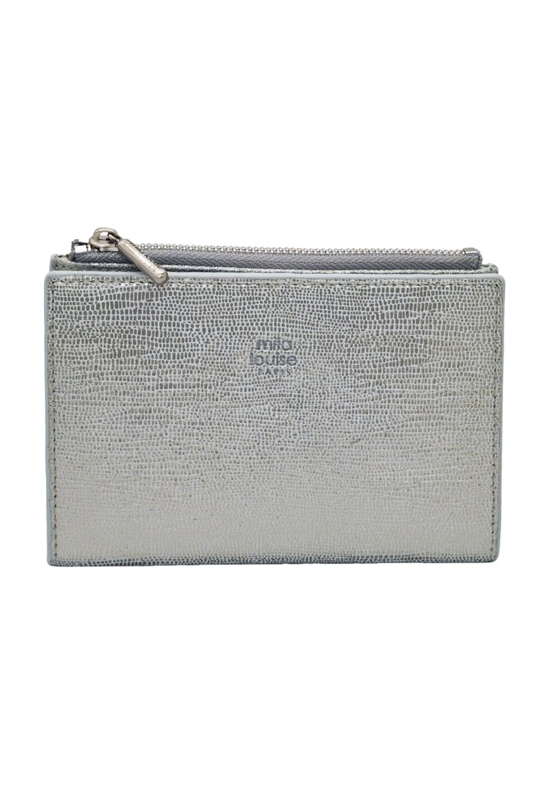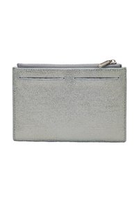 Porte-cartes texturé argent avec pochette à monnaie zippée, design mince et logo subtilement embossé à l'avant.
