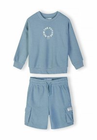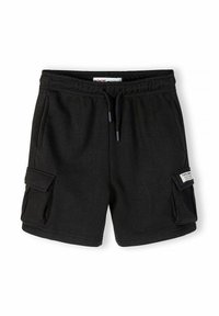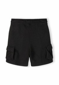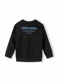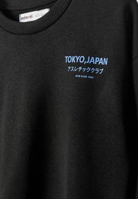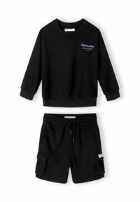 Ensemble deux pièces noir avec un sweat-shirt à manches longues portant le texte "Tokyo, Japon" et un short cargo assorti avec poches et taille à cordon de serrage.