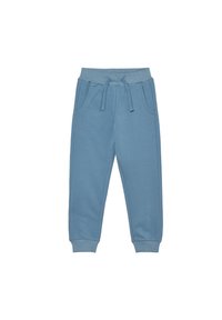 Deux pantalons de jogging : un bleu clair et un bleu marine foncé. Les deux présentent des ceintures élastiques avec cordons de serrage et des poches latérales.