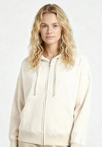 BASIC CROPPED HOODIE DROPSHOULDER - Sweat zippé - off-white