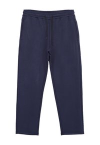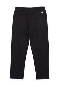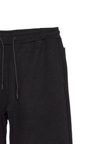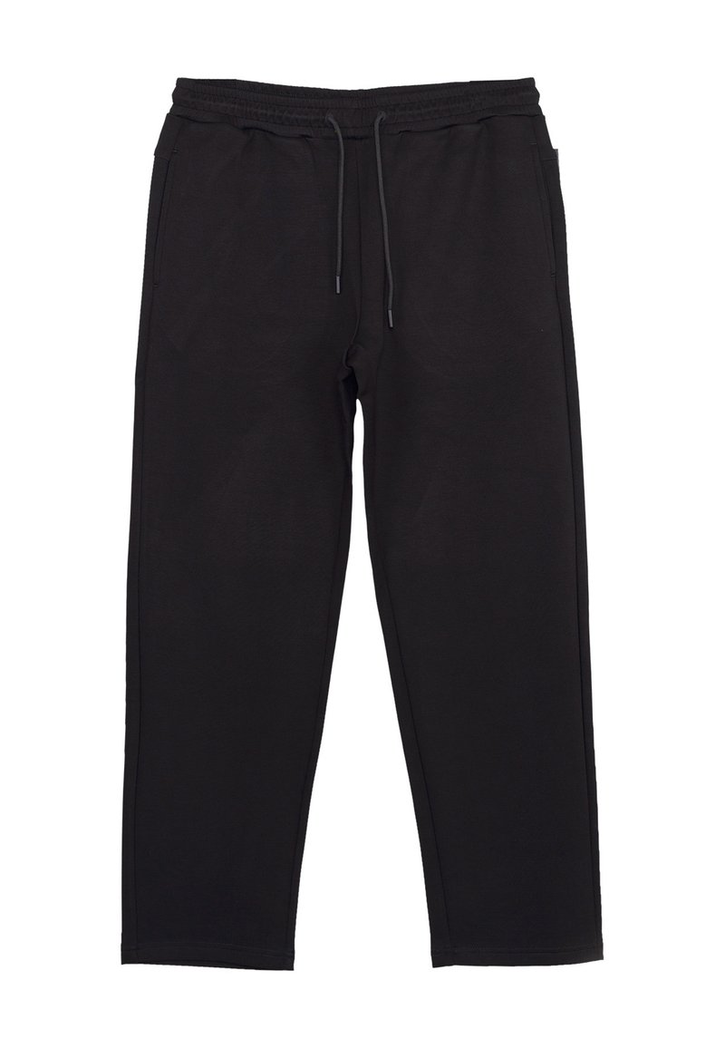 Pantalon décontracté noir avec taille élastique et cordon, coupe droite, poches avant, présenté à plat sur fond blanc.