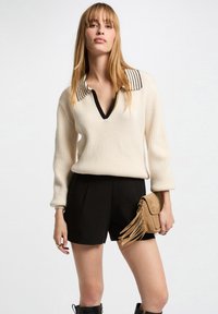V-NECK WITH LAPEL - T-shirt à manches longues - ivoire