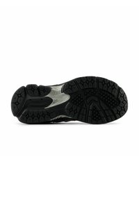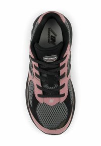 Baskets avec mesh noir et superpositions en cuir rose, semelle noire, lacets noirs et logo "N" sur le côté.
