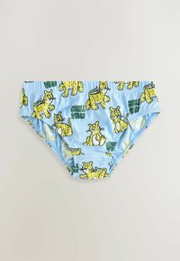 Sept culottes colorées pour enfants avec des imprimés d'animaux de dessin animé, comprenant des tigres, des girafes, des crocodiles, des éléphants et des dinosaures, disposées en éventail.