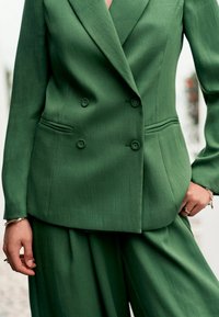 REGULAR FIT - RELAXED DOUBLE BREASTED CRINKLE BLAZER . - Blazer - green