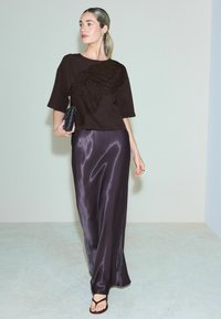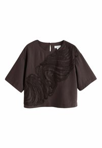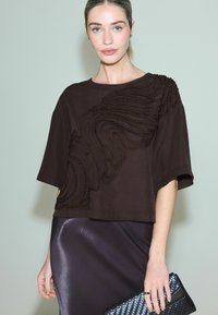 REGULAR FIT - TEXTURED SWIRL DETAIL SHORT SLEEVE TOP . - Blouse - chocolate brown