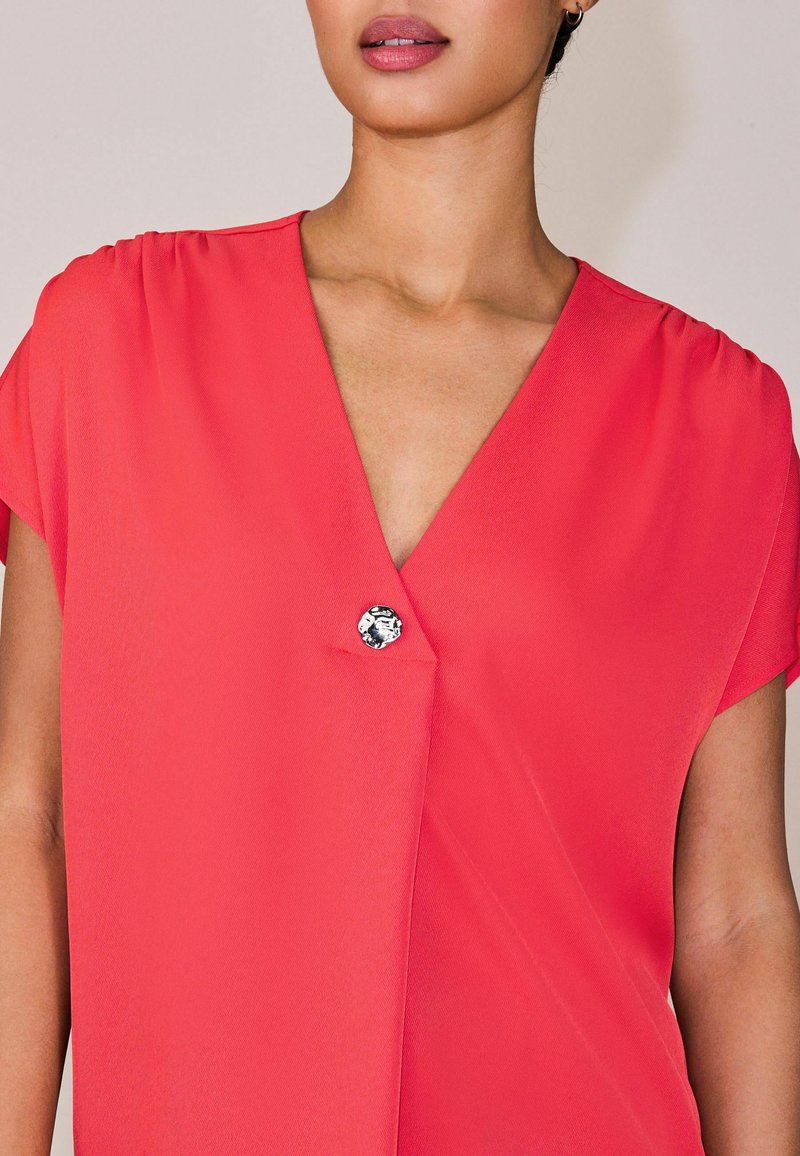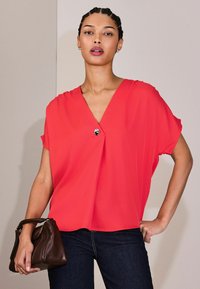 REGULAR FIT - SHORT SLEEVE V-NECK BLOUSE . - Blouse - coral red