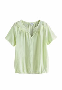 PETITE FIT - SHORT SLEEVE NOTCH NECK SHIRRED BUBBLEHEM T-SHIRT . - Blouse - green palm print
