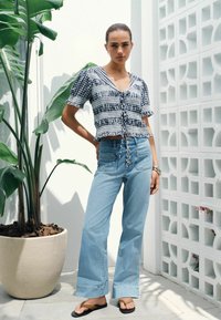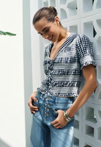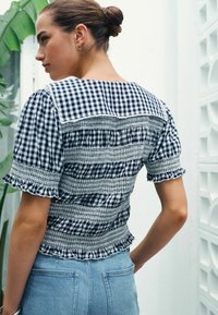 REGULAR FIT - SAILOR COLLAR TIE FRONT TOP . - Blouse - navy blue gingham