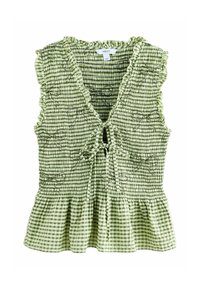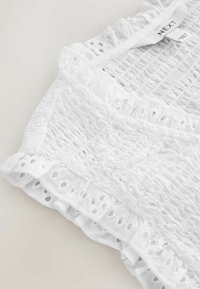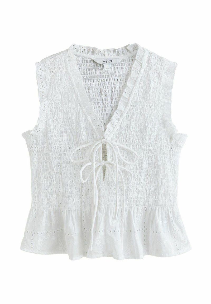 PETITE FIT - SMOCKED TIE FRONT V-NECK TOP . - Blouse - white broderie