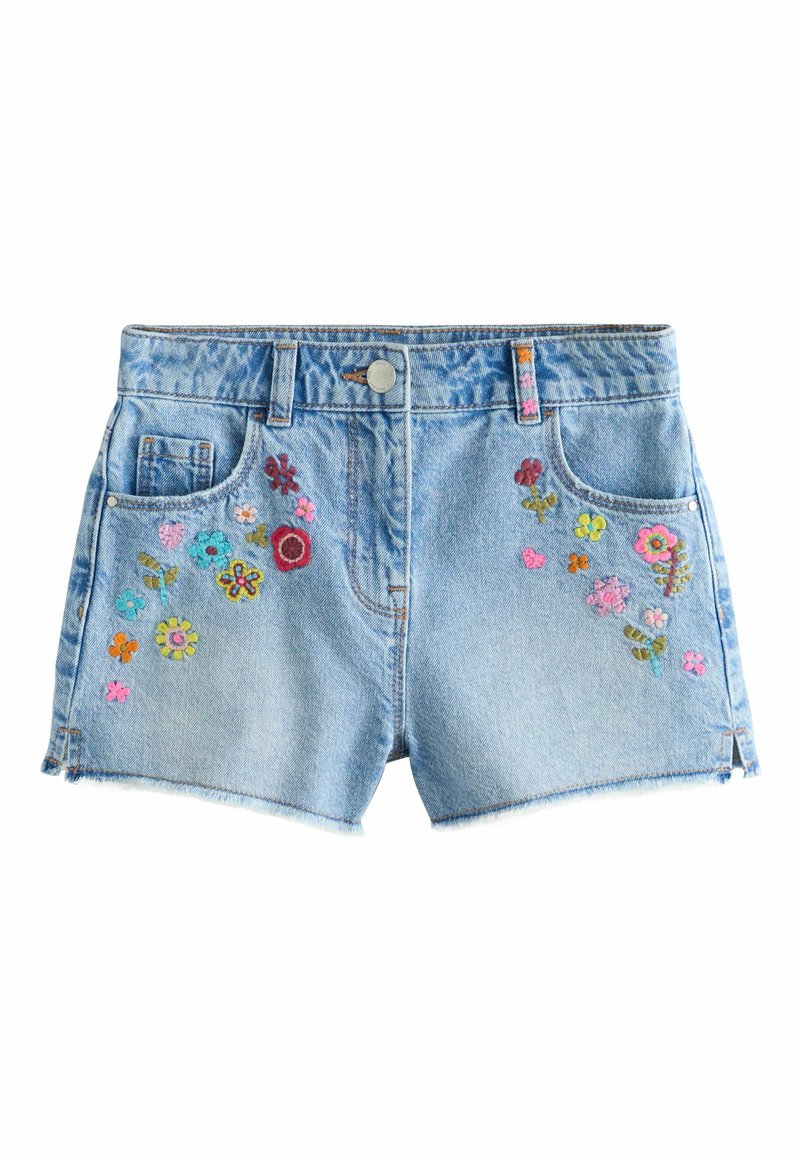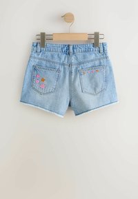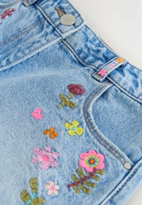 FRAYED EDGE REGULAR LENGTH - Short en jean - mid blue embroidered flowers