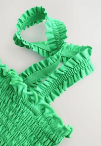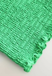 Crop top vert vif avec smocks, fines bretelles à volants et bords volantés en haut et en bas.
