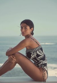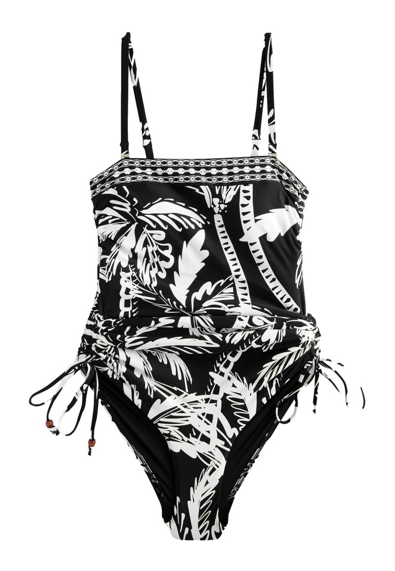 BANDEAU RUCHED LEG TUMMY CONTROL SWIMSUIT TALL - REGULAR FIT - Maillot de bain - black cream palm
