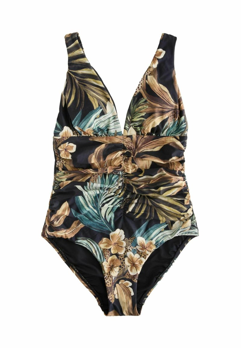TALL FIT - RUCHED PLUNGE TUMMY CONTROL - Maillot de bain - black leopard palm