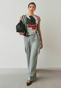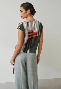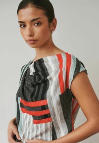 PETITE FIT - ASYMMETRIC PLEATED DRAPE SHORT SLEEVE TOP . - Blouse - grey stripe print