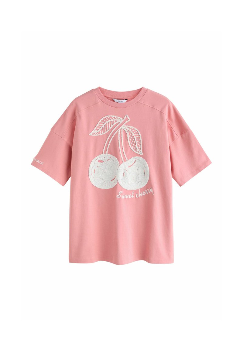PETITE FIT - CHERRY GRAPHIC TEXTURED CREW NECK SHORT SLEEVE - T-shirt imprimé - pink