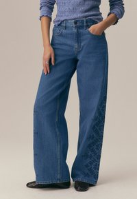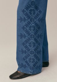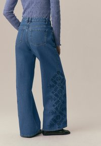 PETITE FIT - Wide Leg - dark blue floral embroidered
