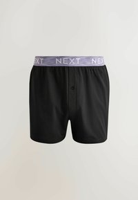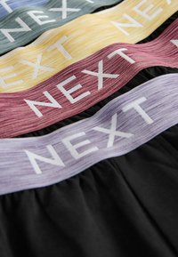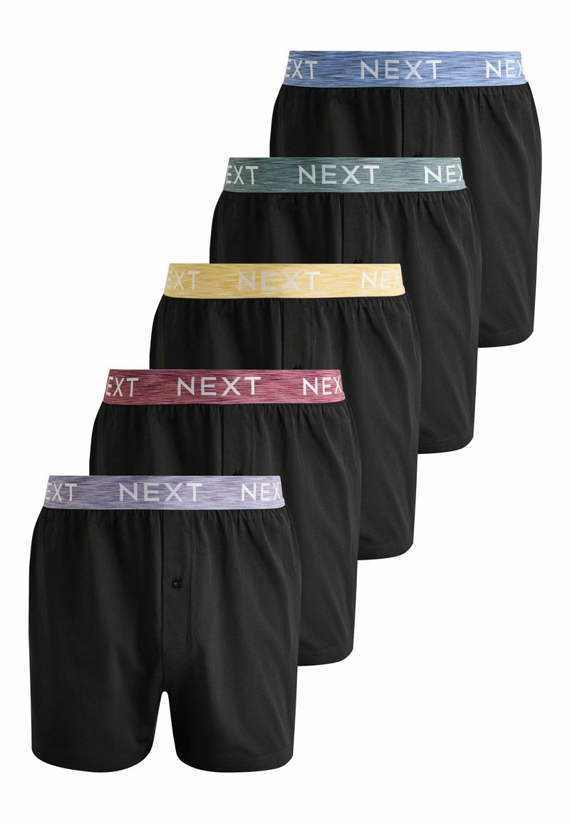 Cinq paires de boxers noirs avec ceintures élastiques en bleu, vert, jaune, rouge et violet, chacun marqué du texte « NEXT ».