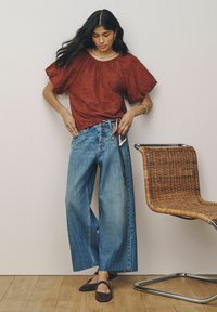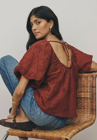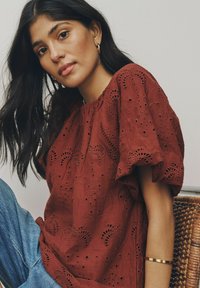 REGULAR FIT - BRODERIE SHORT SLEEVE CREW NECK TOP . - Blouse - rust