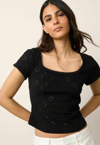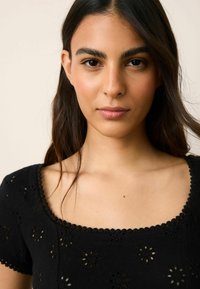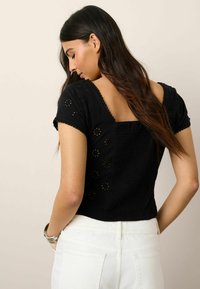 REGULAR FIT - BRODERIE SQUARE NECK CAP SLEEVE TOP . - Blouse - black