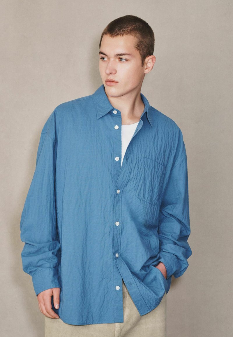 REGULAR FIT - DRUMMED TEXTURE LONG SLEEVE SHIRT . - Chemise - blue