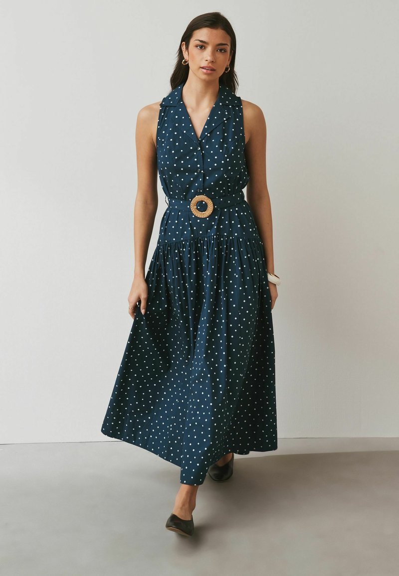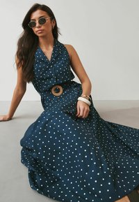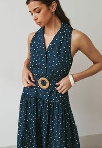 REGULAR FIT - HALTER SHIRT MIDI BELTED DRESS . - Robe chemise - navy blue polka dot