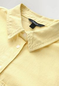 Chemise jaune à manches longues avec col et poche poitrine, en tissu de coton.