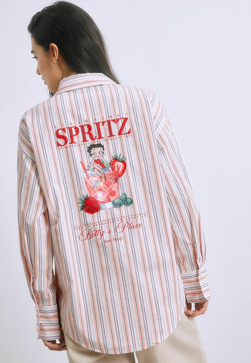REGULAR FIT - OVERSIZED BOYFRIEND LONG SLEEVE SHIRT . - Chemisier - betty boop print pink stripe