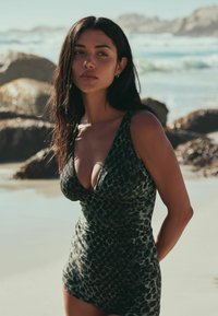 REGULAR FIT - PLUNGE TUMMY CONTROL TANKINI - Haut de bikini - green black leopard print