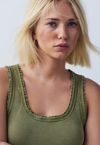 REGULAR FIT - PREMIUM RIBBED SCOOP TANK VEST SLEEVELESS TOP . - Débardeur - khaki green