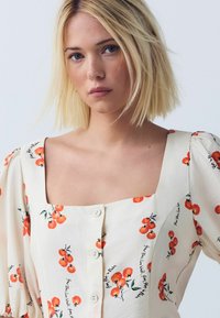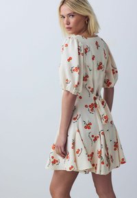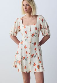 REGULAR FIT - PUFF SLEEVE BUTTON THROUGH MINI DRESS - Robe de jour - ecru tomato print