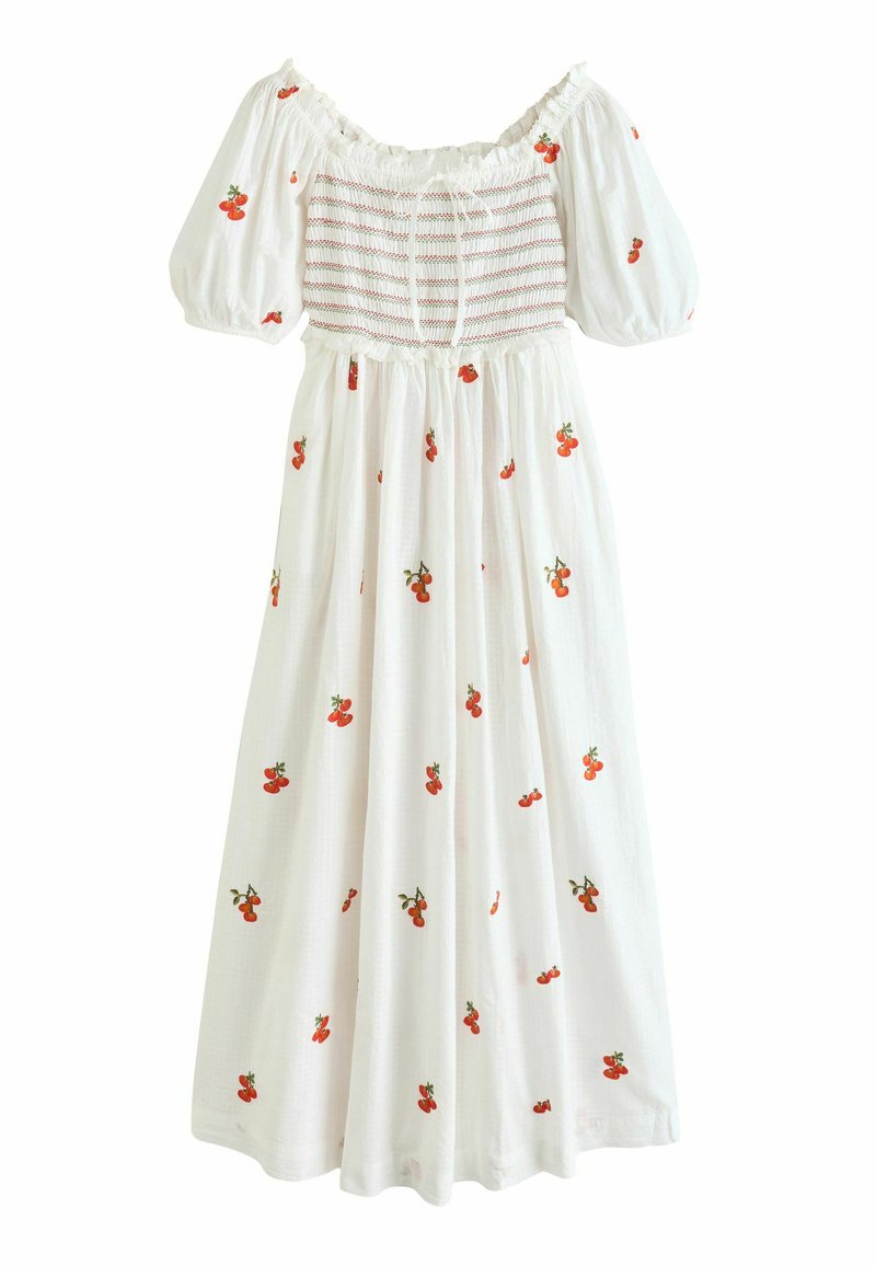 REGULAR FIT - PUFF SLEEVE SHIRRED MIDI DRESS . - Robe de jour - white tomato embroidery
