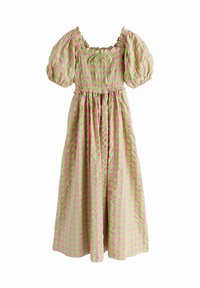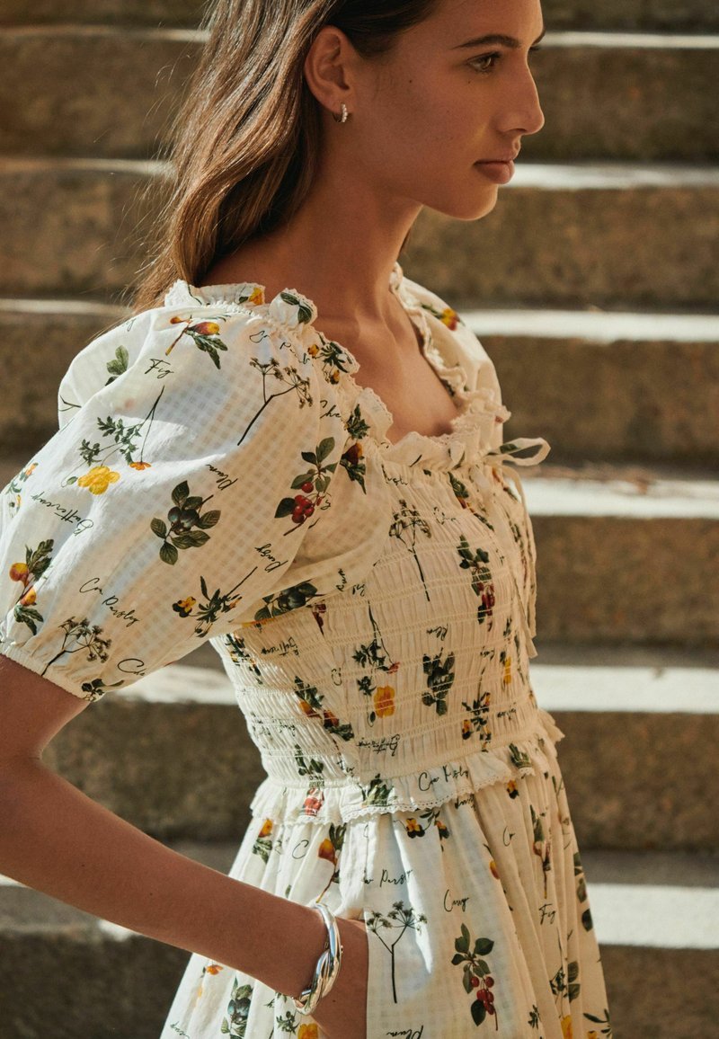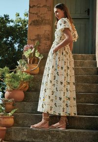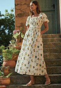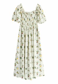 REGULAR FIT - PUFF SLEEVE SHIRRED MIDI DRESS . - Robe de jour - yellow floral print