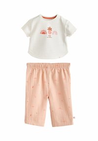 REGULAR FIT - SHORT SLEEVE BABY TOPS AND WIDE LEG LEGGINGS SET 2 PIECE . - Pantalon classique - white pink bunny