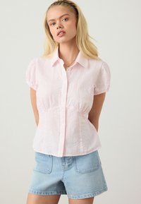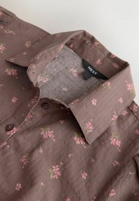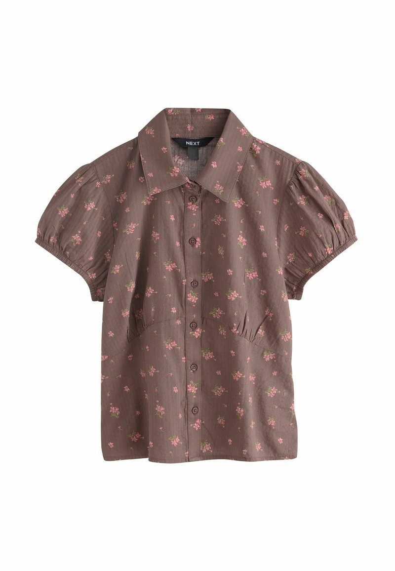 REGULAR FIT - SHORT SLEEVE BUTTON FRONT TOP . - Chemisier - chocolate brown ditsy floral print