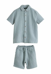 REGULAR FIT - SHORT SLEEVE DOUBLE CLOTH TEXTURED SHIRT AND SHORTS SET . - Short - dark blue
