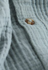 Chemise bleu clair texturée à manches courtes boutonnée, associée à un short assorti à taille élastique avec cordon et poches avant.