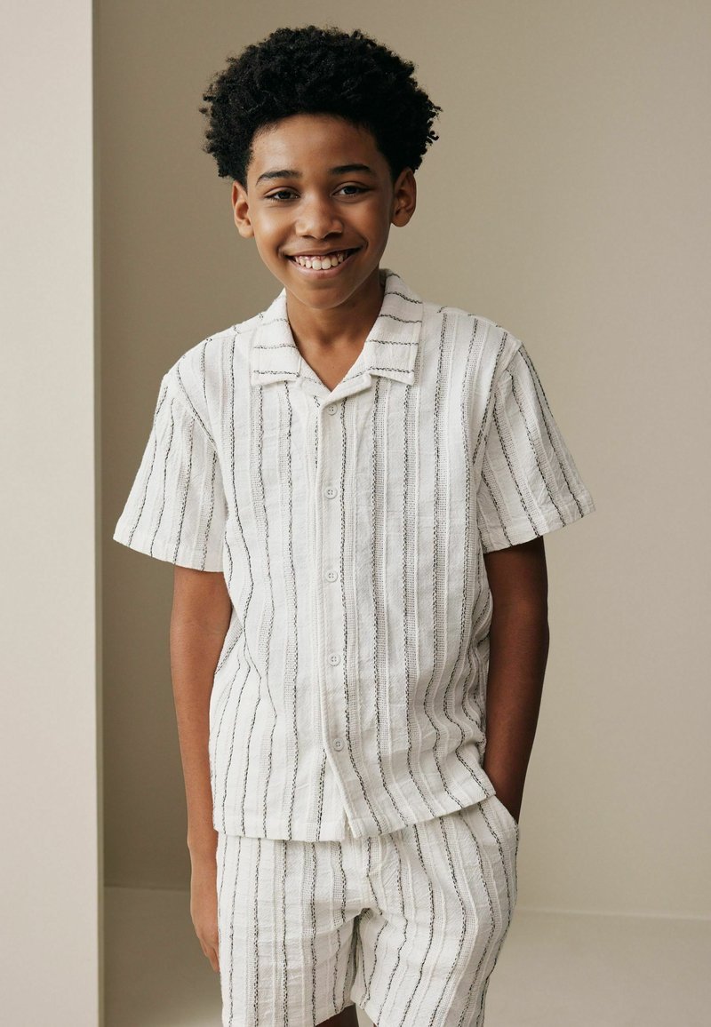 REGULAR FIT - SHORT SLEEVE TEXTURED STRIPE SET - Short - white