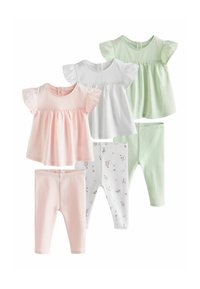 REGULAR FIT - SHORT SLEEVE TOP AND LEGGING BABY 6 PIECE SET . - T-shirt imprimé - pink sage green and white